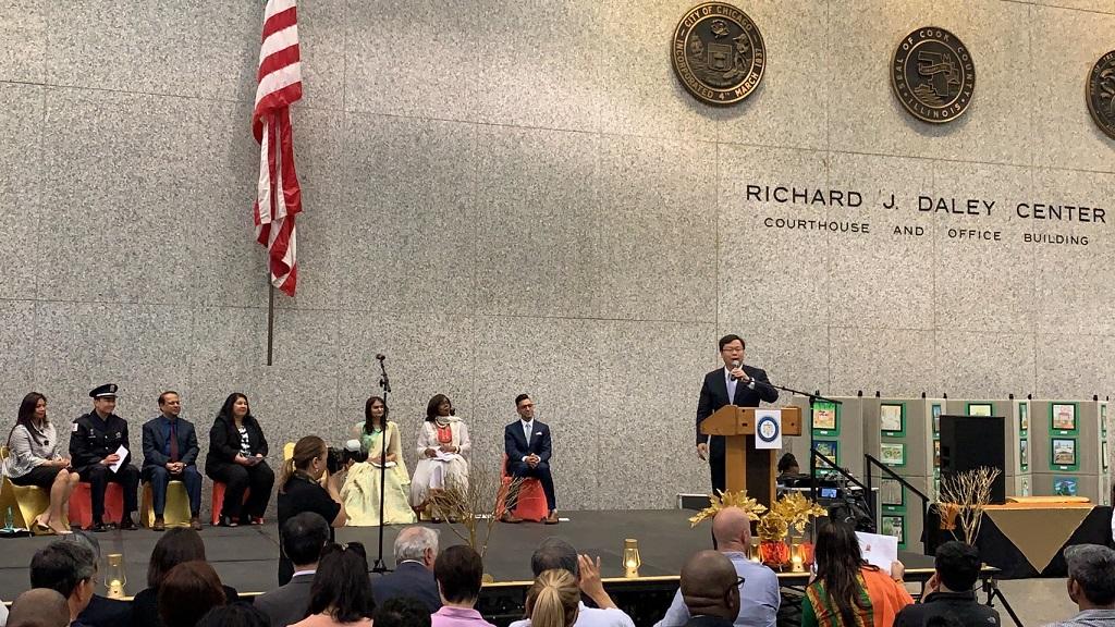 駐芝加哥辦事處處長黃鈞耀本(5)月16日應邀出席伊利諾州庫克郡巡迴法院書記Dorothy Brown辦公室舉辦的慶祝亞裔美國人傳統月特殊貢獻獎頒獎活動。