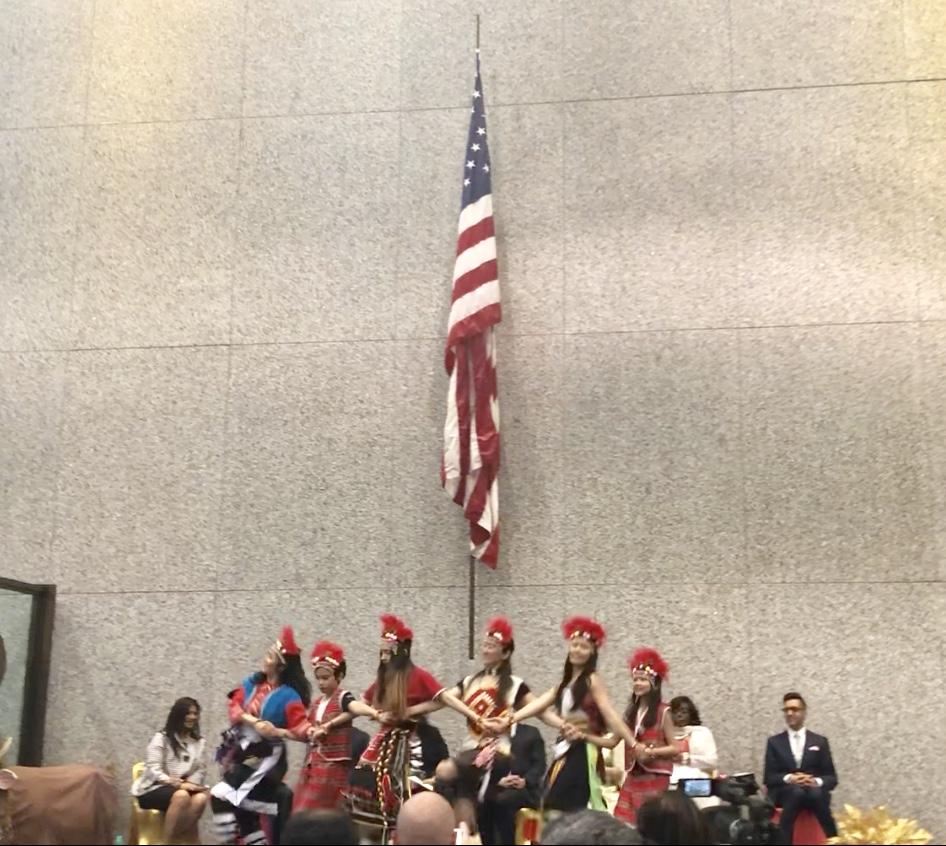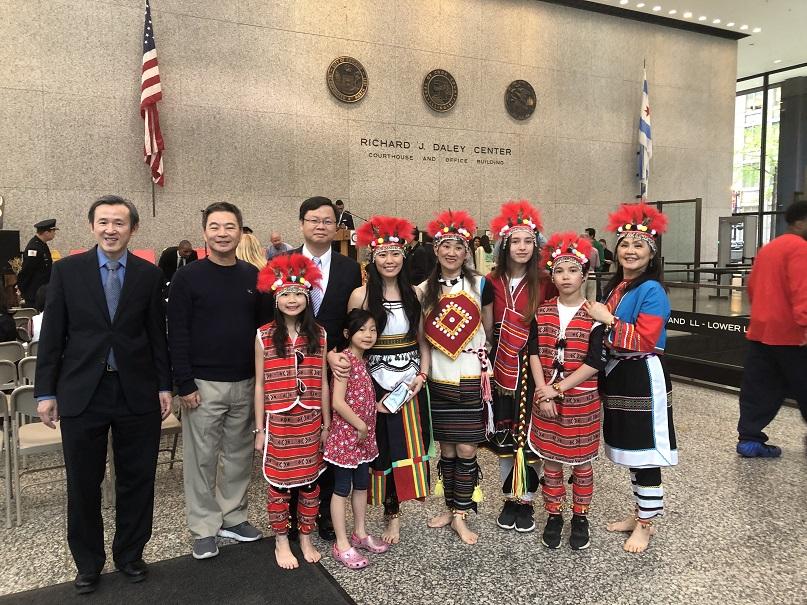 黃處長說明本年適逢美國「台灣關係法」立法40週年,該法對維繫與強化台美關係相當重要,並感謝芝加哥客家會原住民舞蹈的演出,充分展現台灣熱情充沛的精緻文化。