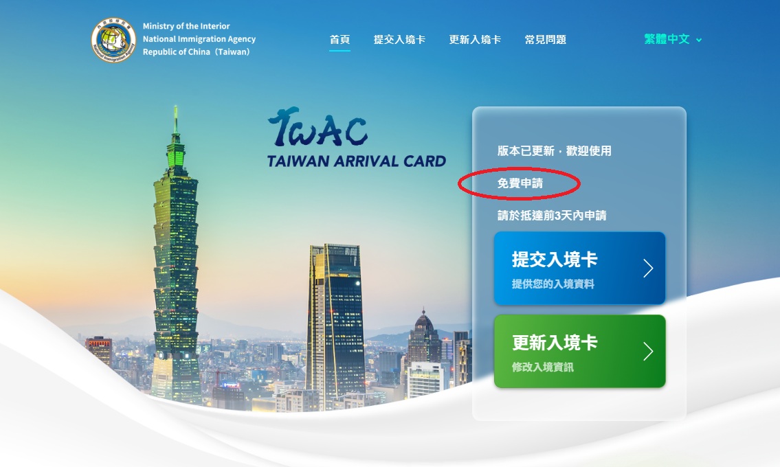 臺灣入境新制即將上路,移民署預計自今年10月1日起全面實施外來旅客網路填寫台灣入境登記表(TAIWAN ARRIVAL CARD,簡稱TWAC)措施,傳統紙本TWAC卡將不再使用。外來旅客於抵達臺灣前三天內,須至移民署TWAC網站完成資料填寫,入境將可以大幅縮短通關時間。TWAC (TAIWAN採免費方式申請,請勿前往詐騙網站致個人資料外洩及錢財損失。