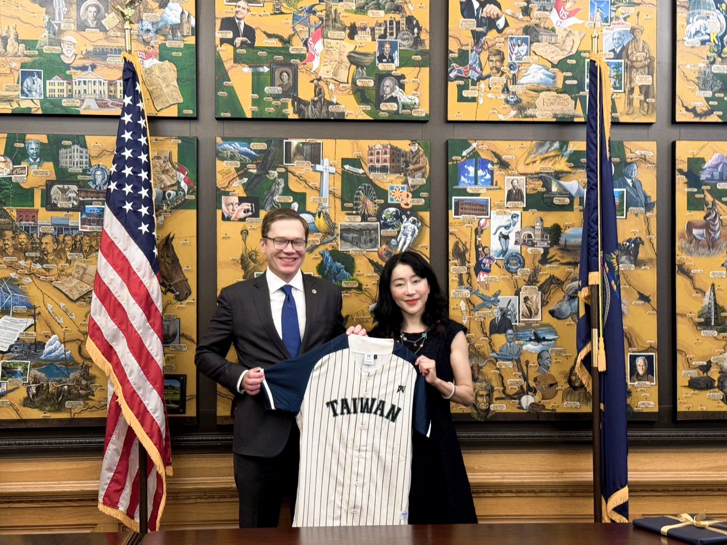 It was Director General Debby Huang’s very first trip to Sunflower State. She had a pleasant talk with Lieutenant Governor David Toland on enhancing bilateral trade cooperation between Taiwan and State of Kansas. Moreover, DG Huang prepared a limited edition baseball jersey of Team Taiwan for Lt. Governor Toland as a souvenir of friendship! You can tell how much Lt. Governor Toland liked the one and only jersey from his face!