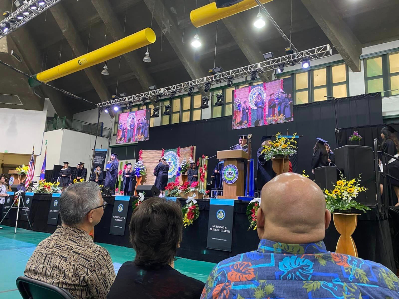 盧副組長啟章本(5)月19日代表陳總領事盈連應邀出席在關島大學體育館舉行之本(2023)年度關島社區大學畢業典禮