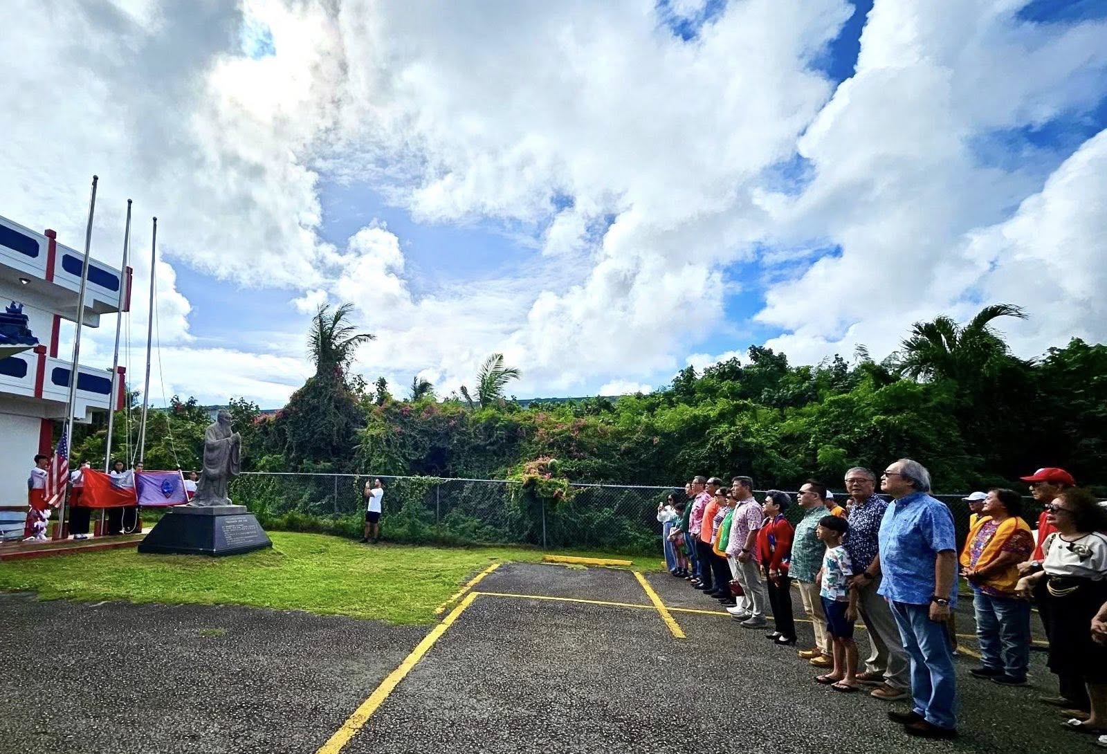 為迎接 2026 年元旦,關島中華總會、關島中華學校董事會暨基金會於關島中華學校舉行元旦升旗典禮。 駐關島台北經濟文化辦事處劉嘉平處長偕同盧啟章、楊慎修副組長出席,與僑界先進及鄉親朋友一同迎接新年。 劉處長表示,升旗典禮象徵對國家的熱愛與文化傳承,並祝福僑胞新年快樂、身體健康、闔家平安、萬事如意。 同時感謝僑界長期支持僑務工作,期盼新的一年持續攜手合作,促進臺關交流,共創美好未來。