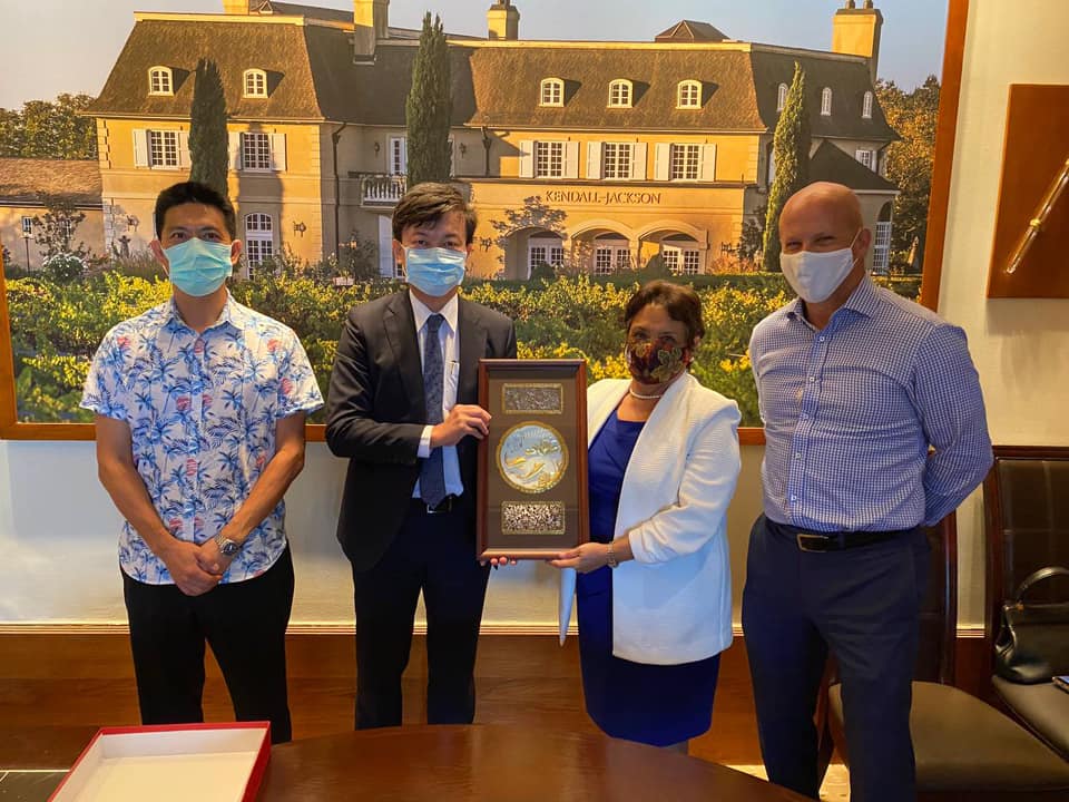110年4月22日本處陳總領事盈連午宴關島總督古蕾露(Lourdes A. Leon Guerrero),關島經濟發展局董事會主席David John及本處許組長書智在座