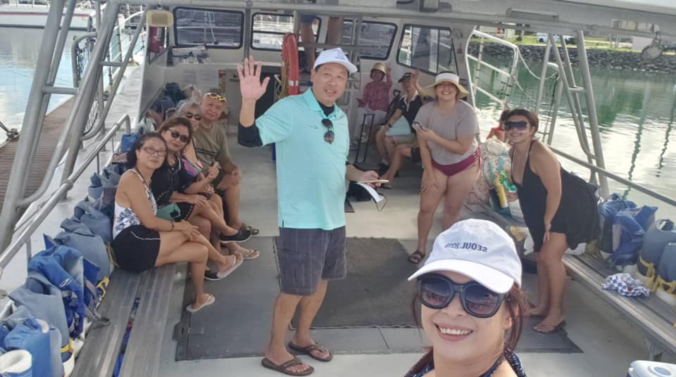 110年11月6日本處盧副組長啟章偕眷代表本處參加關島中華總會舉辦之遊艇出海賞豚及浮潛體驗活... - 駐關島台北經濟文化辦事處 Taipei Economic and Cultural Office in Guam ::: 跳到主要內容區塊