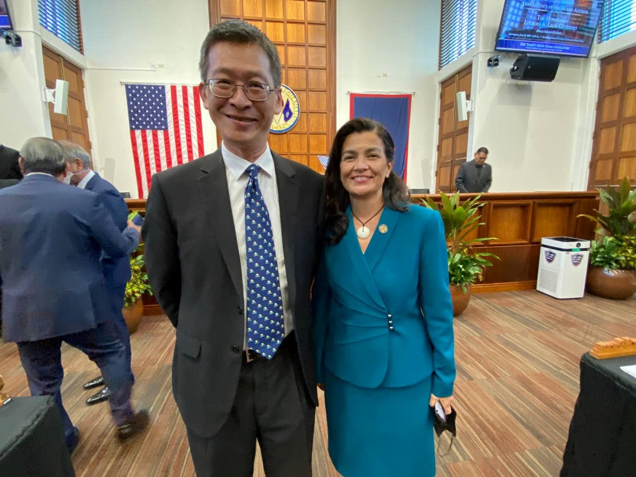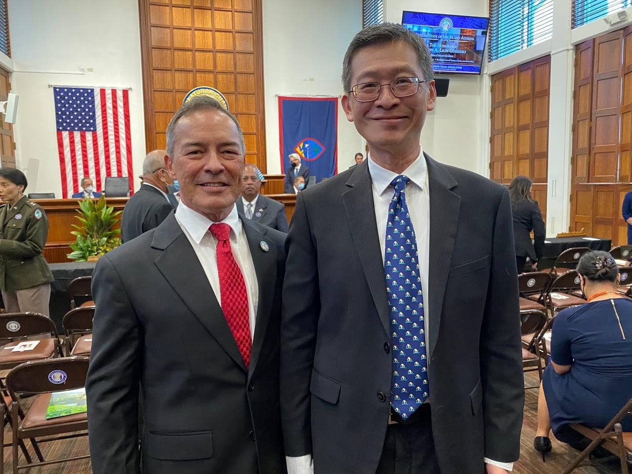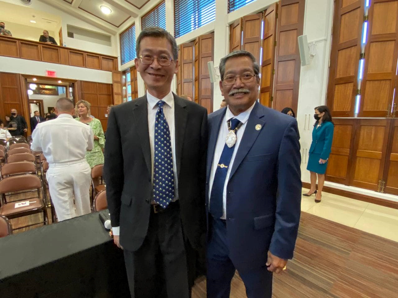 111年6月22日關島總督古蕾露(Lou Leon Guerrero)於關島議會發表島情咨文演說,本處盧副組長啟章偕黃副領事嘉郁代表陳總領事盈連應邀出席