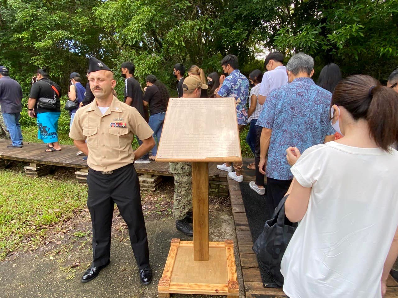 本處盧副組長啟章於本(111)年7月19日代表陳總領事盈連應邀參加關島政府舉辦之第二次世界大戰Fena事件地點參訪活動及Fena事件死難者紀念追思典禮