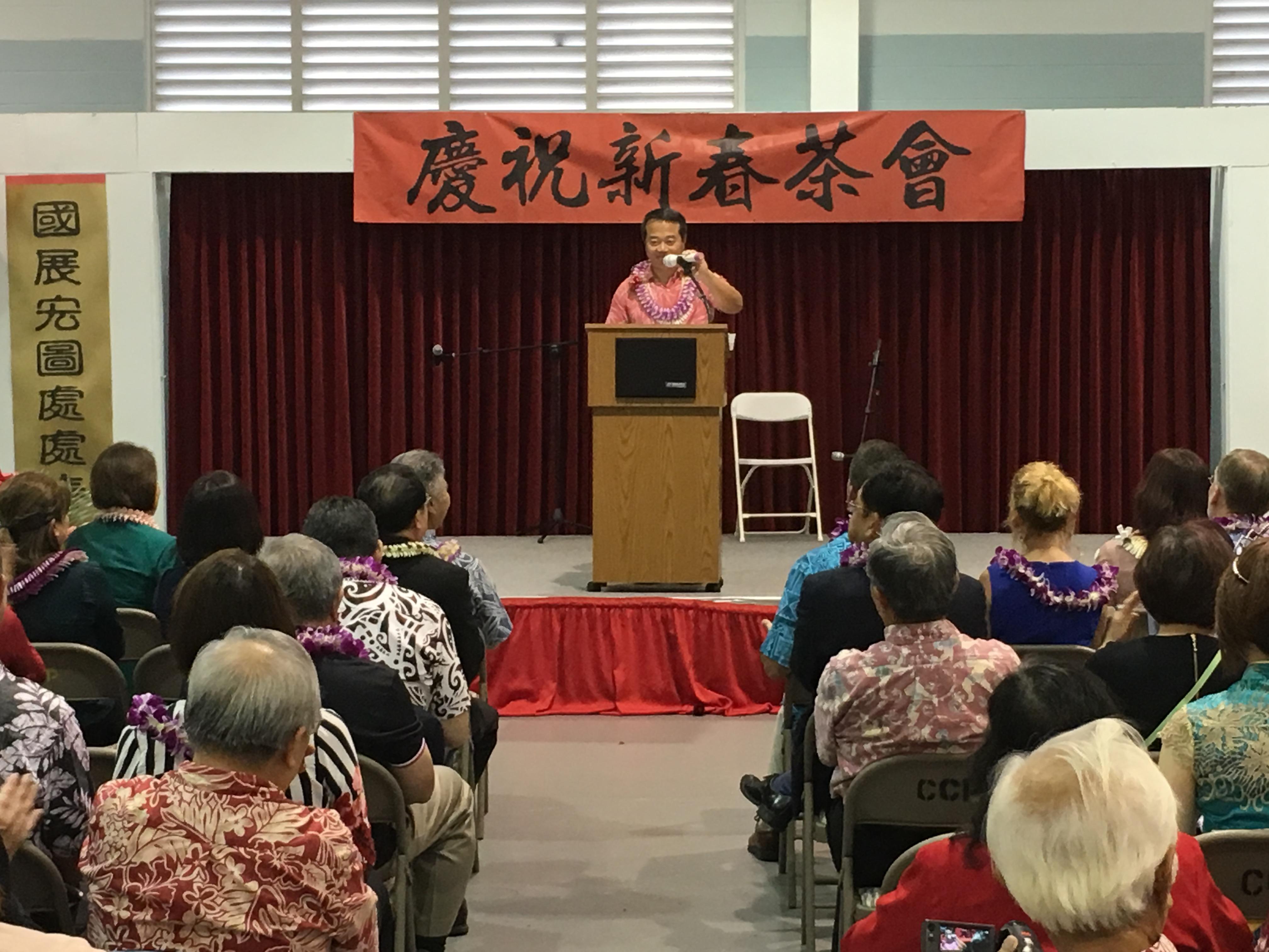 一、為慶祝農曆元宵春節,本處於本(2)月11日(星期六)下午3時至4時30分假華埠文化廣場中山學校體育館舉行106年新春茶會,夏州政、學、僑、商界人士約300人蒞臨慶賀,重要貴賓包括夏州州長David Ige夫婦、AIT理事主席莫健大使(James Moriarty)夫婦、AIT前理事主席薄瑞光大使( Amb.Raymond Burghardt)、夏州眾議會榮譽議長佘貴人(Calvin Say)、夏州參議員Karl Rhoads、Stanley Chang、夏州州眾議會多數黨領袖Scott Saiki;領事團部分包括日、韓等國總領事、副總領事及名譽領事、僑務委員聶威傑、賴昌隸及重要僑領包括中華總會館、中華總商會、夏威夷華人聯誼會、臺灣同鄉會、臺灣商會之主席及會長等。