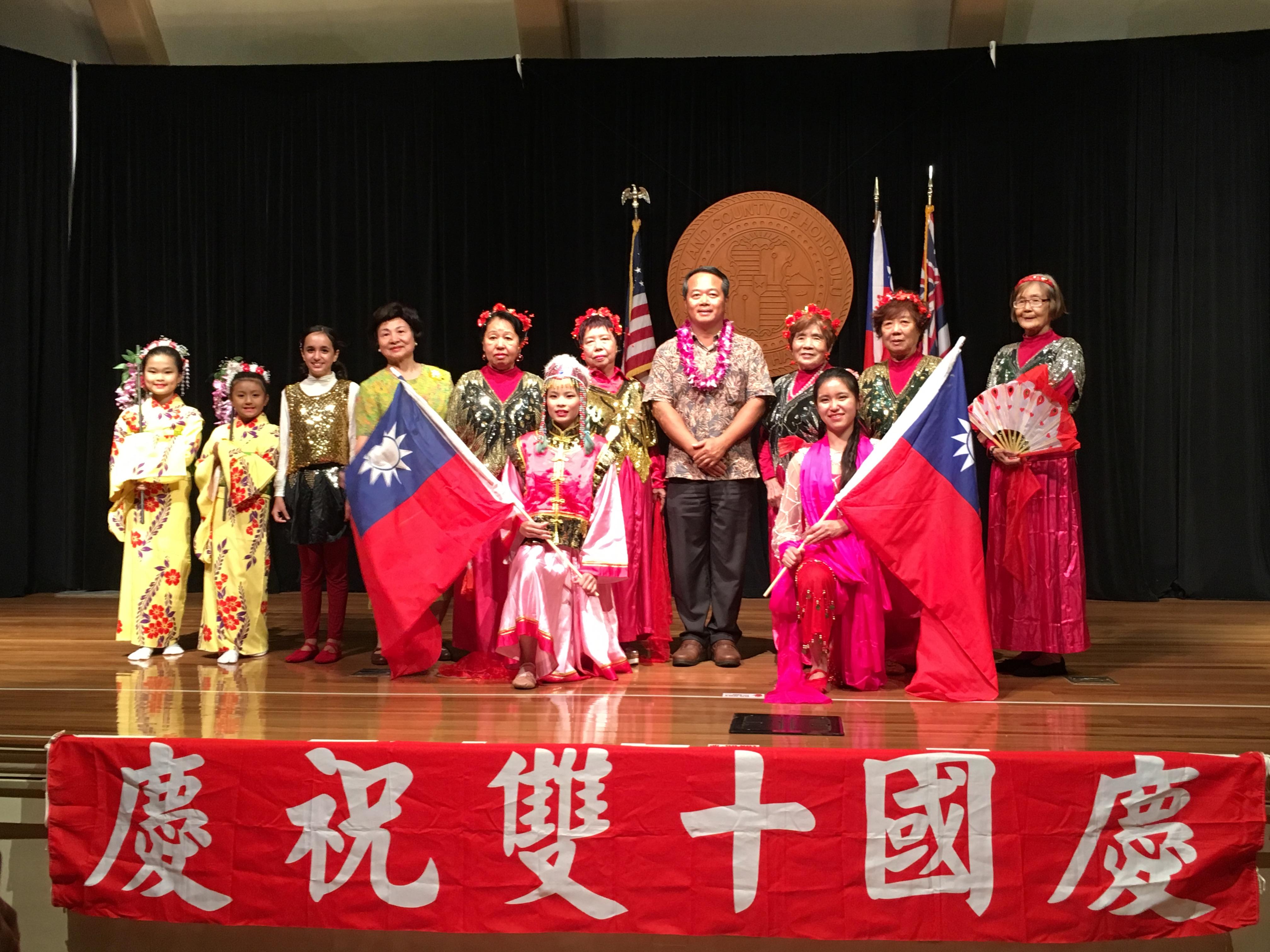 為慶祝中華民國國慶,旅美台裔舞蹈家林淑芳主持之中華文藝舞蹈團本(9)月23日於檀市市政府表演廳舉行2017年文藝大公演,當天下午演出24支帶有民族暨台灣本土風味之舞蹈,駐檀香山辦事處周民淦總領事偕同仁應邀擔任出席貴賓,共計吸引近百位來賓觀賞演出。當天節目在全體舞者及觀眾一同演唱中華民國國旗歌之高昂歌聲中劃下美好句點,充分展現旅夏僑胞愛國懷鄉之熱情。