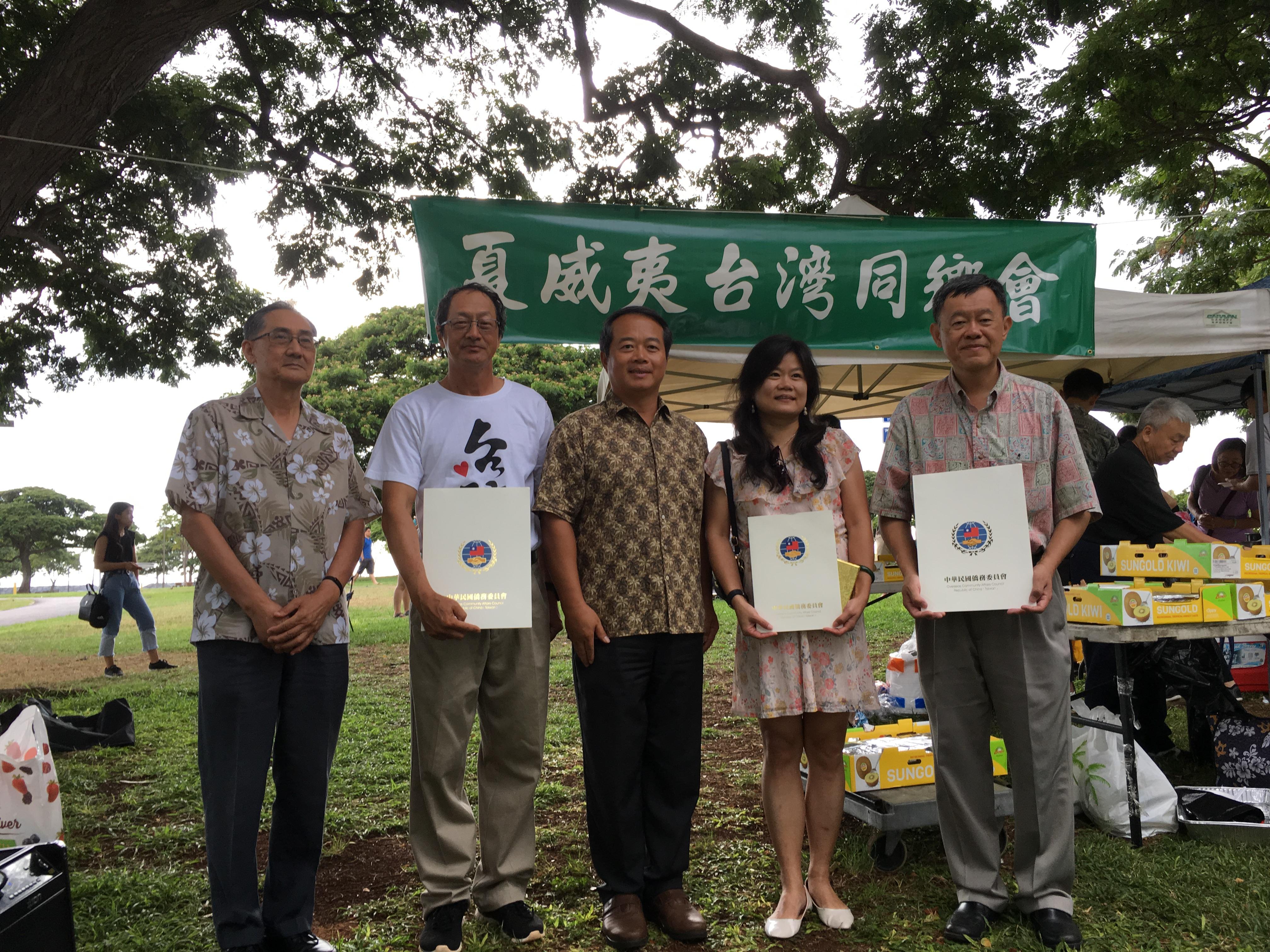 夏威夷台灣同鄉會本(10)月7日於Ala Moana Park舉辦一年一度的中秋節野餐活動,駐檀香山辦事處周民淦總領事偕該處廖烈明副總領事及王裕宏副組長一同參加與僑民同樂。