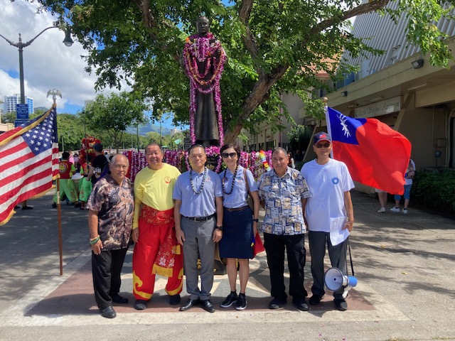 林處長表示,檀香山是孫中山先生少年求學的地方,也是革命團體興中會的誕生地,這裡的華人社團一些祖輩曾與國父孫中山先生有過交往或支持過革命,也因為檀香山華僑的大力支持與資助,中華民國才得以創建。近年來台灣自由民主蓬勃發展,允為全球供應鏈的重要環節,尤其是在半導體生產等領域,追求完美˴成就卓越,成為華人社會引以為傲,唯一真正實踐三民主義的典範,今天可以說是一起在這裡歡慶及紀念這個屬於大家的重要日子。