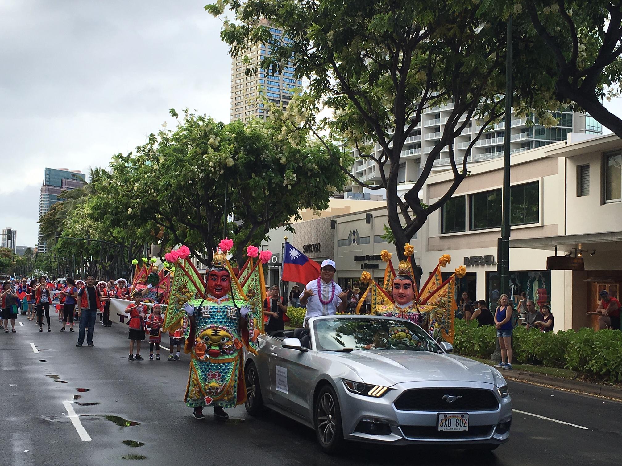 Wallace Chow, Director General of Taipei Economic and Cultural Office in Honolulu, attended the 38th Pan-Pacific Festival Parade in Waikiki, Honolulu. Riding a silver convertible, Mr. Chow waved to crowds alongside Kalakaua Avenue. Two local Taiwanese societies- Hawaii Taiwanese Center and Mandarin Academy organized a 70-member strong group, all wearing Taiwanese aboriginal costume and waving its national flags and the US flags, and passionately took part in the Parade.