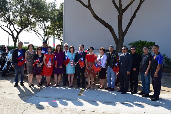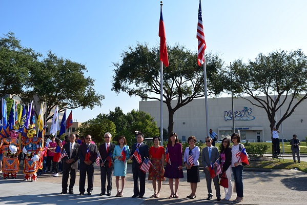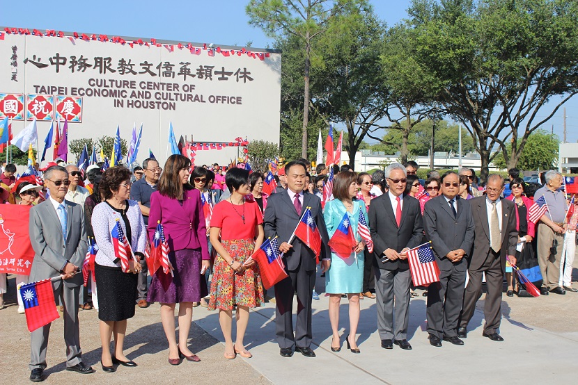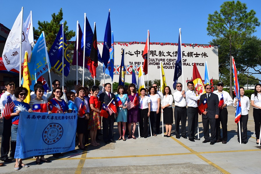 黃處長首先在國慶升旗典禮中致詞表示:欣見許多來自德州、外州及各城市之老僑及新僑前來參加本年慶祝國慶升旗典禮。中華民國之青天白日滿地紅國旗代表國父孫中山先生創建民國之自由、平等與博愛的理念,中華民國國旗乃全世界華人所共有。「民國」之意即為屬於全體人民之國家,亦即代表著孫中山先生「民有、民治、民享」的理念。中華民國創建過程歷經10次革命方成功,且成為現今華人社會中唯一享有完全自由民主之國家,其艱辛過程有如女性懷胎十月般,全體華人應共同呵護我們的國家,及支持此一自由民主制度,使其能如一顆種子般在其他華人社會中萌芽成長。