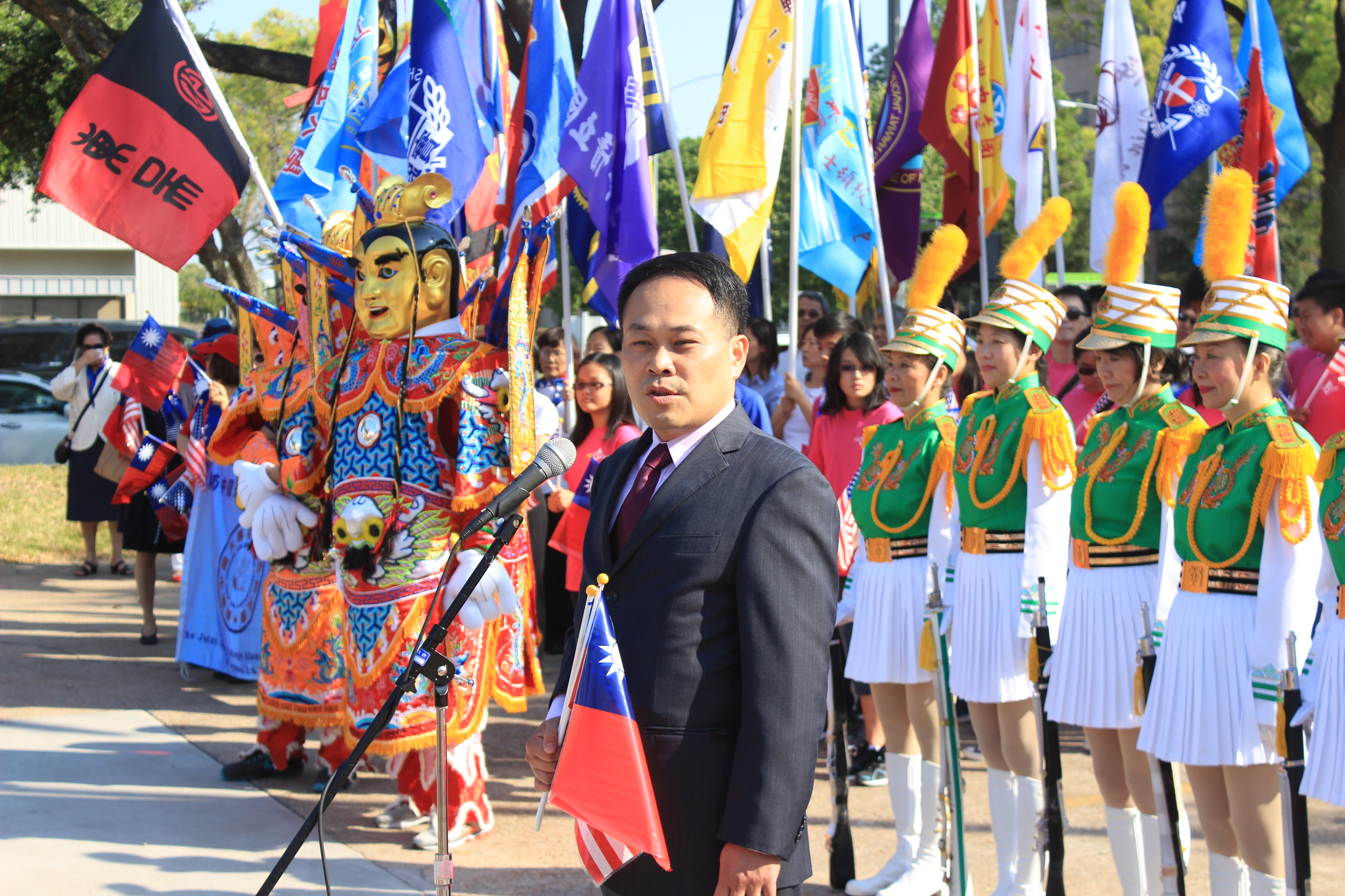 - 休士頓傳統僑社潮州會館醒獅團於104年國慶升旗典禮開始前表演。
