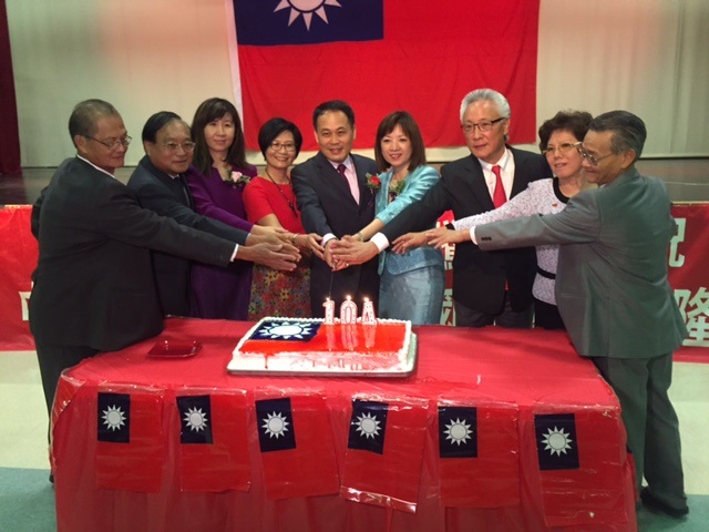 - 黃敏境處長夫婦與僑務委員及104年國慶籌備委員會合切慶祝104年中華民國國慶蛋糕。