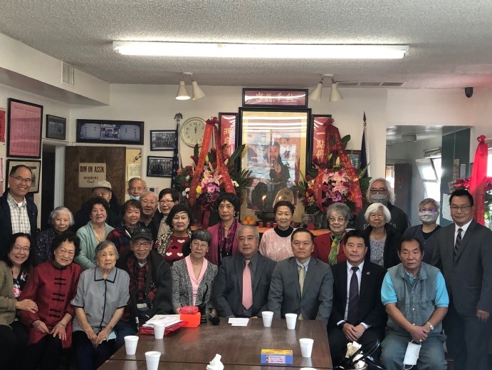 羅省岡州保安堂於本(2021)年12月4日舉辦2022年新任正、副主席暨職員就職典禮,駐洛杉磯台北經濟文化辦事處林暉程副處長應邀出席並主持就職儀式,陪同前往的還有經文處葉立傑組長及洛僑中心張皓鈞主任、鄭心茹副主任,場面簡單隆重。 林副處長致詞時表示,非常榮幸能參加羅省岡州保安堂新任正、副主席及職員就職典禮,經文處和保安堂過去合作密切,希望在劉國賜主席、潘杏萍副主席帶領下,能和經文處合作,為促進僑社和諧,增進僑民福祉共同努力。林副處長也用廣東話祝福在場鄉親身體健康、萬事如意,並與95歲高齡的呂勝禮元老話家常,祝福老人家安康。隨後林副處長也代表僑務委員會童振源委員長頒發賀狀給兩位新任且同時也是連任的劉國賜主席、潘杏萍副主席,並予祝福與期盼。