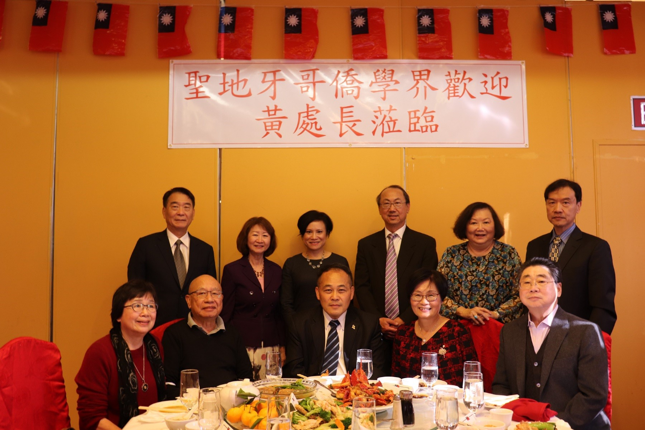 當日參加午宴的僑領包括聖地牙哥台美基金會現任副董事長張裕華、前董事長范清亮夫婦、全球台灣研究中心董事長胡兌昀、台灣人公共事務會聖地牙哥分會會長洪克璿、台灣同鄉會會長邱銖寬、台灣商會會長史孟珠、中華科工聯誼會會長葉紹陽、中華會館主席朱培德、僑務諮詢委員黃莉莉、傅家康及聖地牙哥中文學校校長徐惠寶等40人參加。