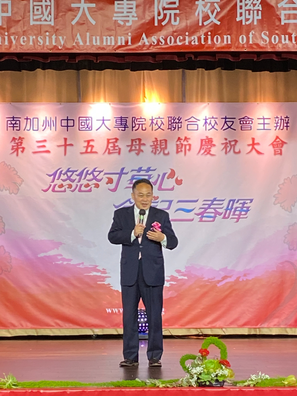 2022年5月8日黃敏境處長應邀出席南加州中國大專院校聯合校友會主辦之「第35屆母親節慶祝大會」致詞勉勵與會人士