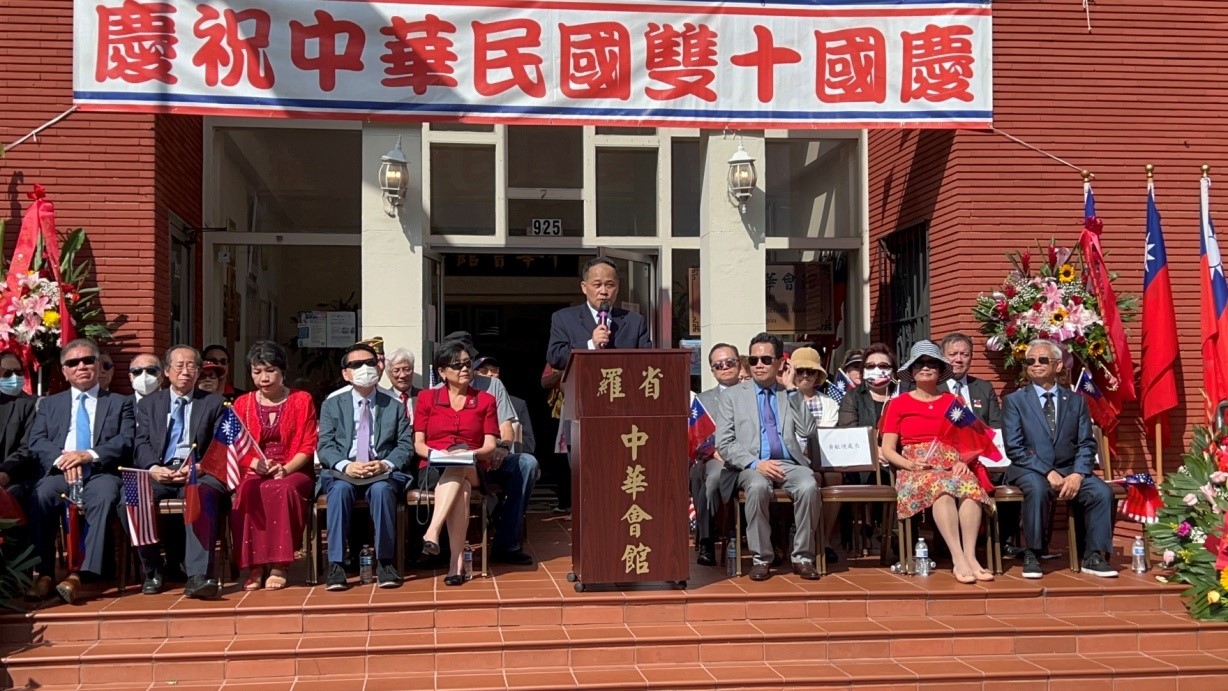 | 羅省中華會館於本(2022)年10月8日(星期六)上午舉辦「南加州全僑慶祝中華民國111年國慶」活動,駐洛杉磯台北經濟文化辦事處黃敏境處長夫婦偕同仁與眷屬參加華埠遊行及升旗典禮,之後並帶領全僑向國父孫中山先生銅像獻花致敬。