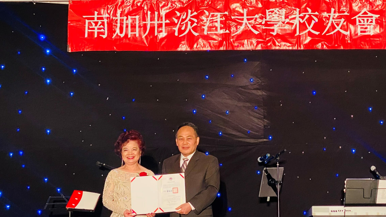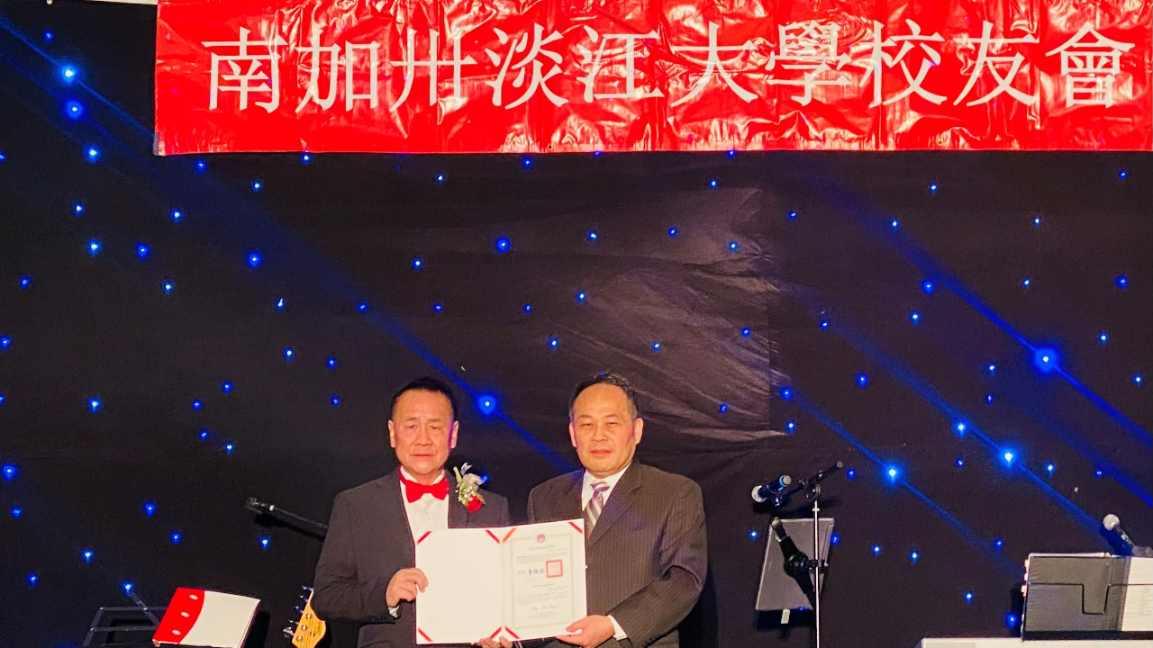 2022年12月17日黃敏境處長代表僑委會童振源委員長頒贈感謝狀予2022年淡江大學校友會吳典龍會長。