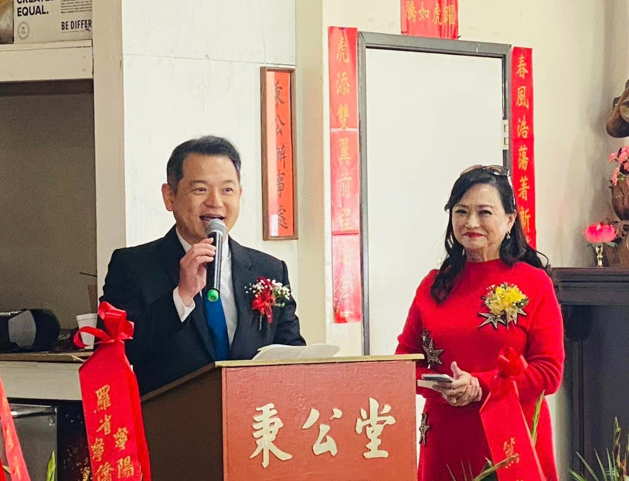 紀處長表示,很榮幸受邀參加羅省秉公堂2023年祭祖典禮,該堂成立至今超過百年,與中華民國的歷史密不可分。洛杉磯華埠的羅省中華會館及幾個僑社懸掛中華民國國旗,包括羅省秉公堂在內。