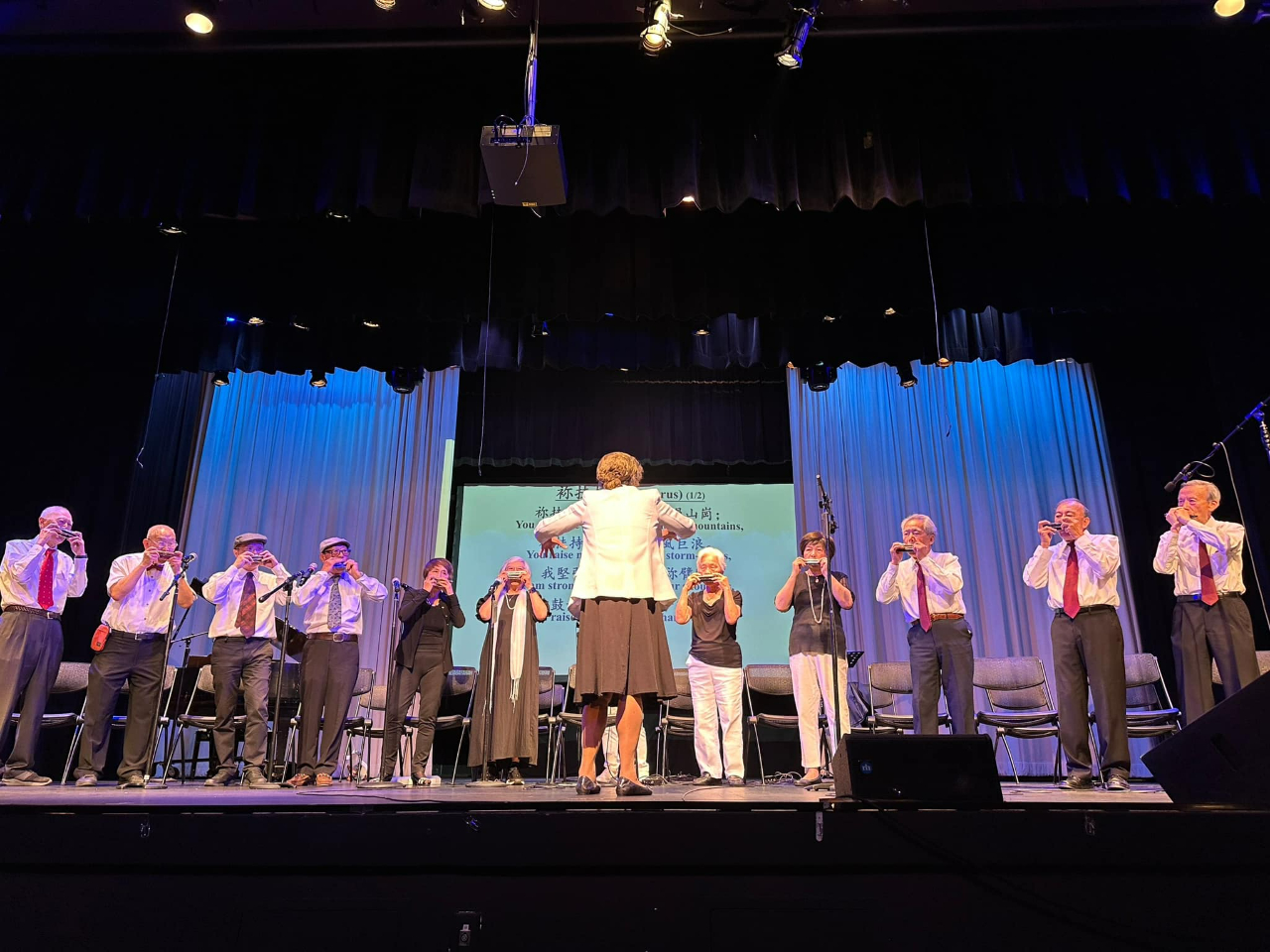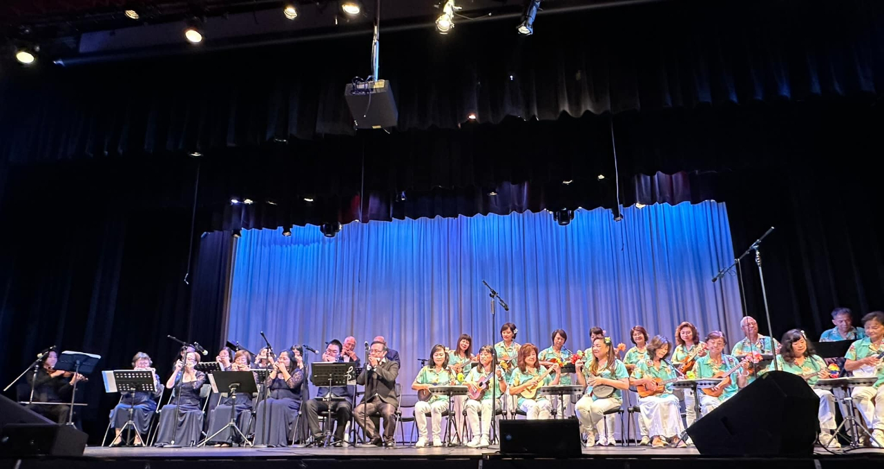南加「夏日音樂會」8月5日下午於拉古納伍茲表演藝術中心登場,來自台灣的口琴音樂家李孝明及張邵齊,與當地僑團爾灣愛樂口琴樂團(Irvine Fun Play)、橙縣烏克麗麗Ukesfun表演隊、爾灣銀髮族口琴樂團與益壯口琴樂團等,合作演出多首經典曲目,吸引將近800名當地民眾前來聆聽。