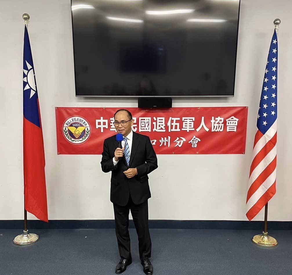 張副處長致詞表示,感謝國軍保家衛國,守護中華民國台灣的民主、自由和經濟發展,在退伍之後仍心繫國家 。南加州分會在張學海理事長的帶領下舉辦許多愛國活動,祝賀新上任的楊震南理事長再創新猷。