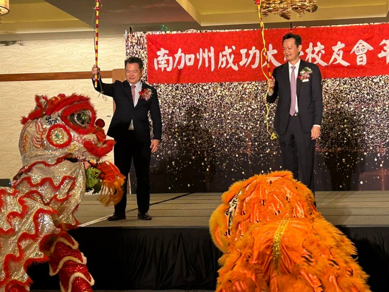 紀欽耀處長夫婦偕同仁出席「成功大學南加州校友會」在Hyatt Regency 舉辦的56週年年會,成大之友舞獅團表演,熱鬧拉開序幕。