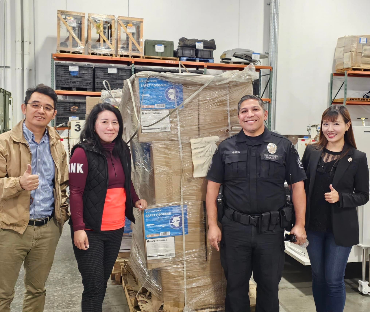 本處再捐贈大洛杉磯警政機關14,000個N95口罩及5,500個護目鏡 - 駐洛杉磯台北經濟文化辦事處 Taipei Economic and Cultural Office in Los Angeles ::: 跳到主要內容區塊