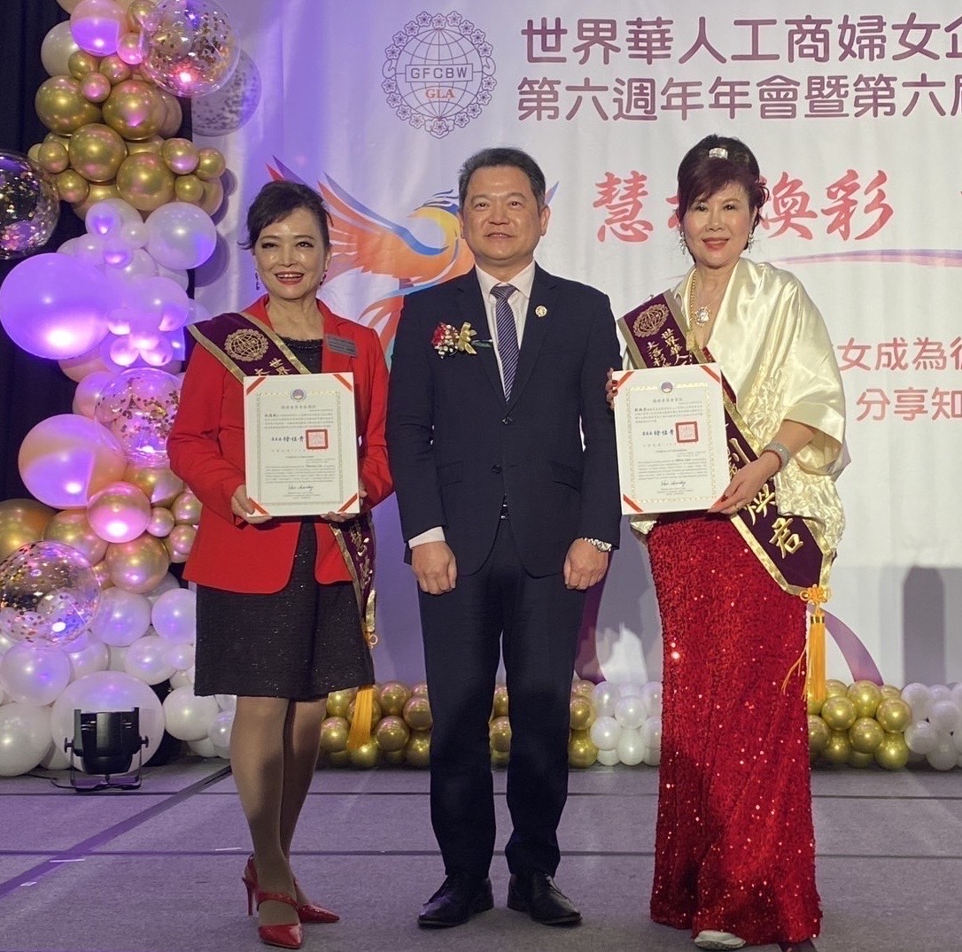 紀欽耀處長夫婦偕同仁於2月23日出席世界華人工商婦女企管協會大洛杉磯分會第6週年年會暨第6、7屆會長交接典禮,在世華總會林淑敏總會長及眾多姊妹的熱情參與下,共同見證大洛分會在傳承與創新中繼續前行。