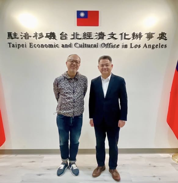 紀欽耀處長於5月15日在本處會見鍾孟宏導演,分享臺灣電影作爲文化傳遞的軟實力。紀處長非常欣賞鍾導演作品《陽光普照》,並預祝導演5月16日至18日回顧影展順利成功。