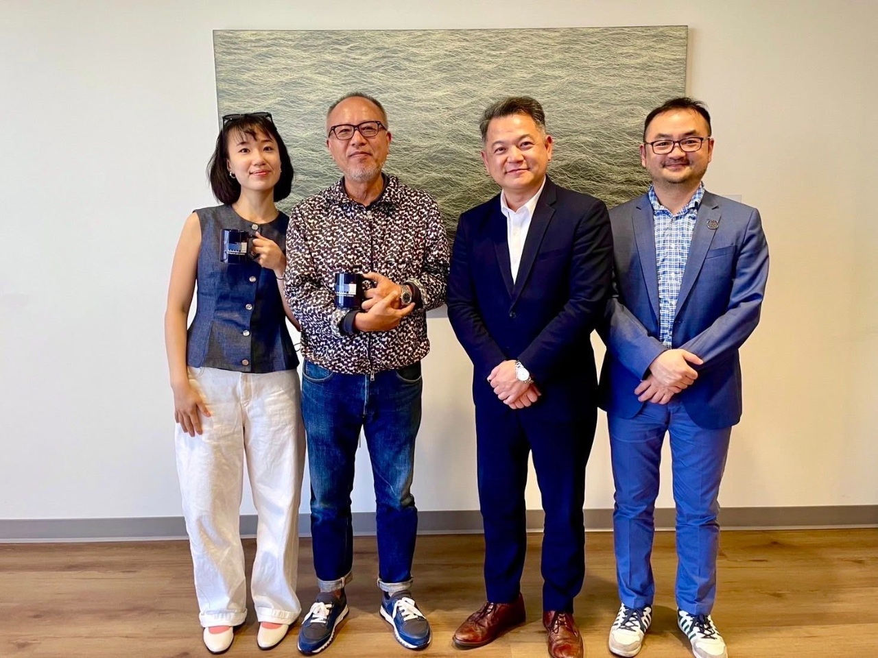 圖說2:紀欽耀處長偕本處臺灣書院簡德源主任(右1)與鍾孟宏導源(左2)及紐約藝術設計師女兒鍾以涵(左1)合影。