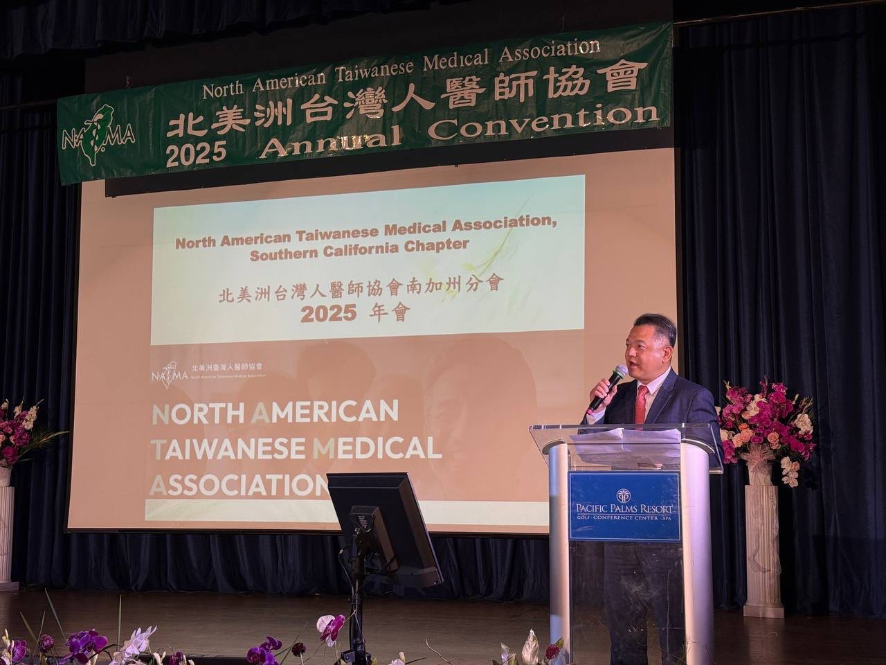 「北美洲臺灣人醫師協會南加州分會」(NATMA-SCC)於10月18日在太平洋棕櫚酒店(Pacific Palms Resort)舉行2025年年會暨晚宴。紀欽耀處長應邀出席,國策顧問田詒鴻及林榮松、僑務諮詢委員林翠雲、許正雄及楊熾勳等僑領及台美人醫界菁英熱情參與盛會,共襄盛舉。