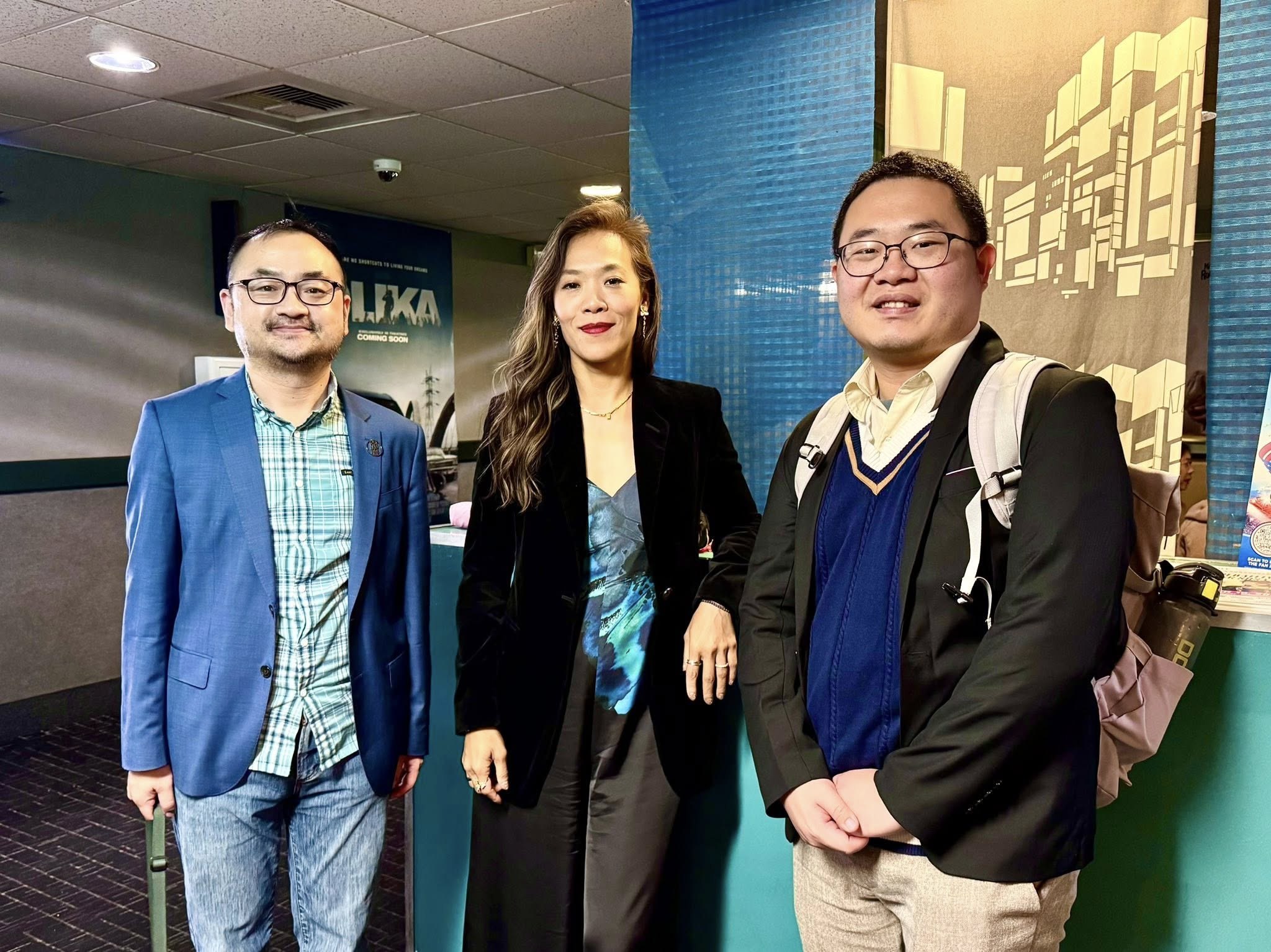 圖說1:《左撇子女孩》鄒時擎導演(中)受邀至聖地牙哥亞洲電影節映後座談,與臺灣書院簡德源主任(左1)、張庭肇秘書(右1)合影。