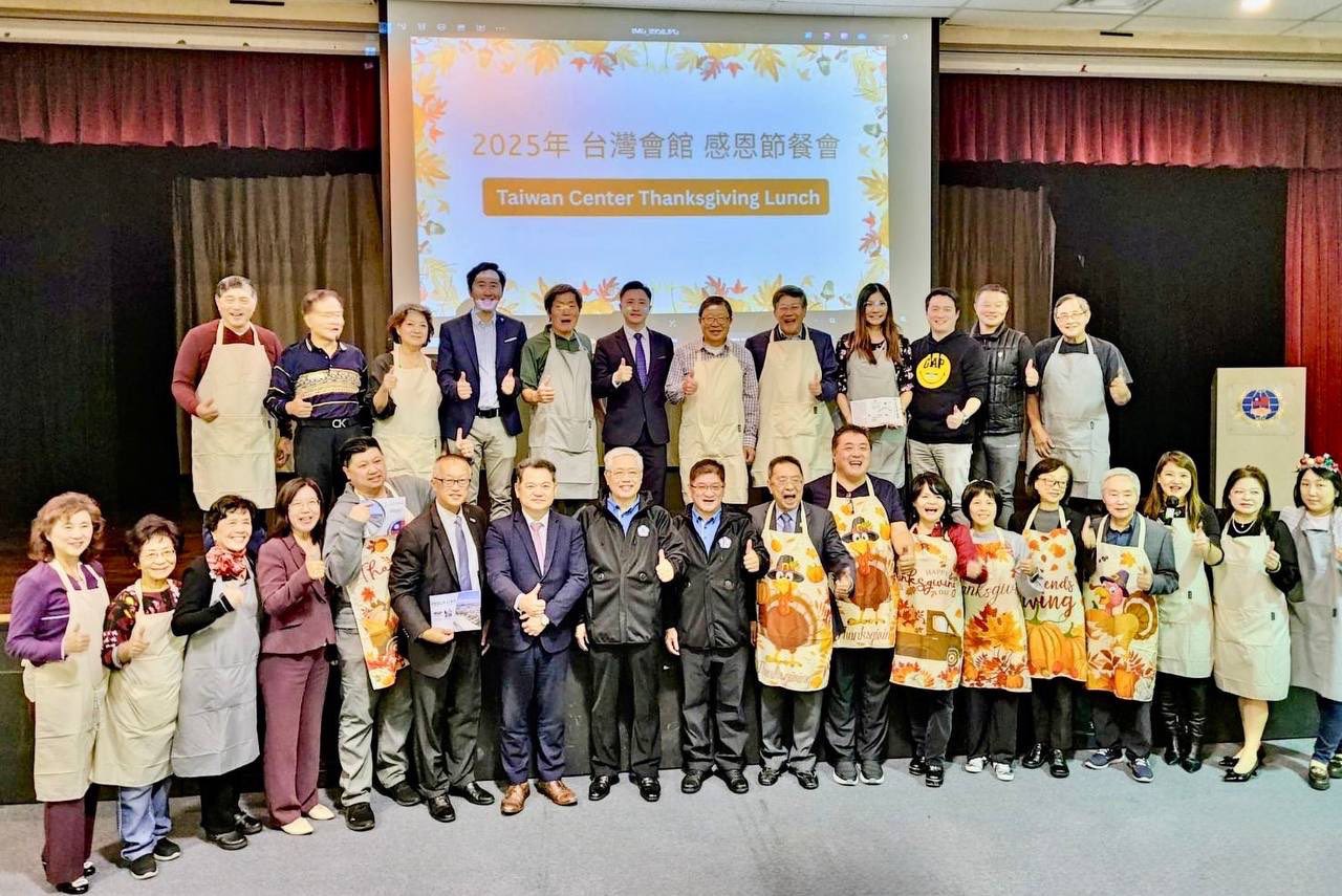 大洛杉磯台灣會館於11月23日在洛僑中心盛大舉辦2025年海外台灣留學生感恩節餐會。活動吸引來自南加州各大學200多位台灣留學生參加,紀欽耀處長也率同仁到場與青年朋友共度佳節,場面熱鬧溫馨。
