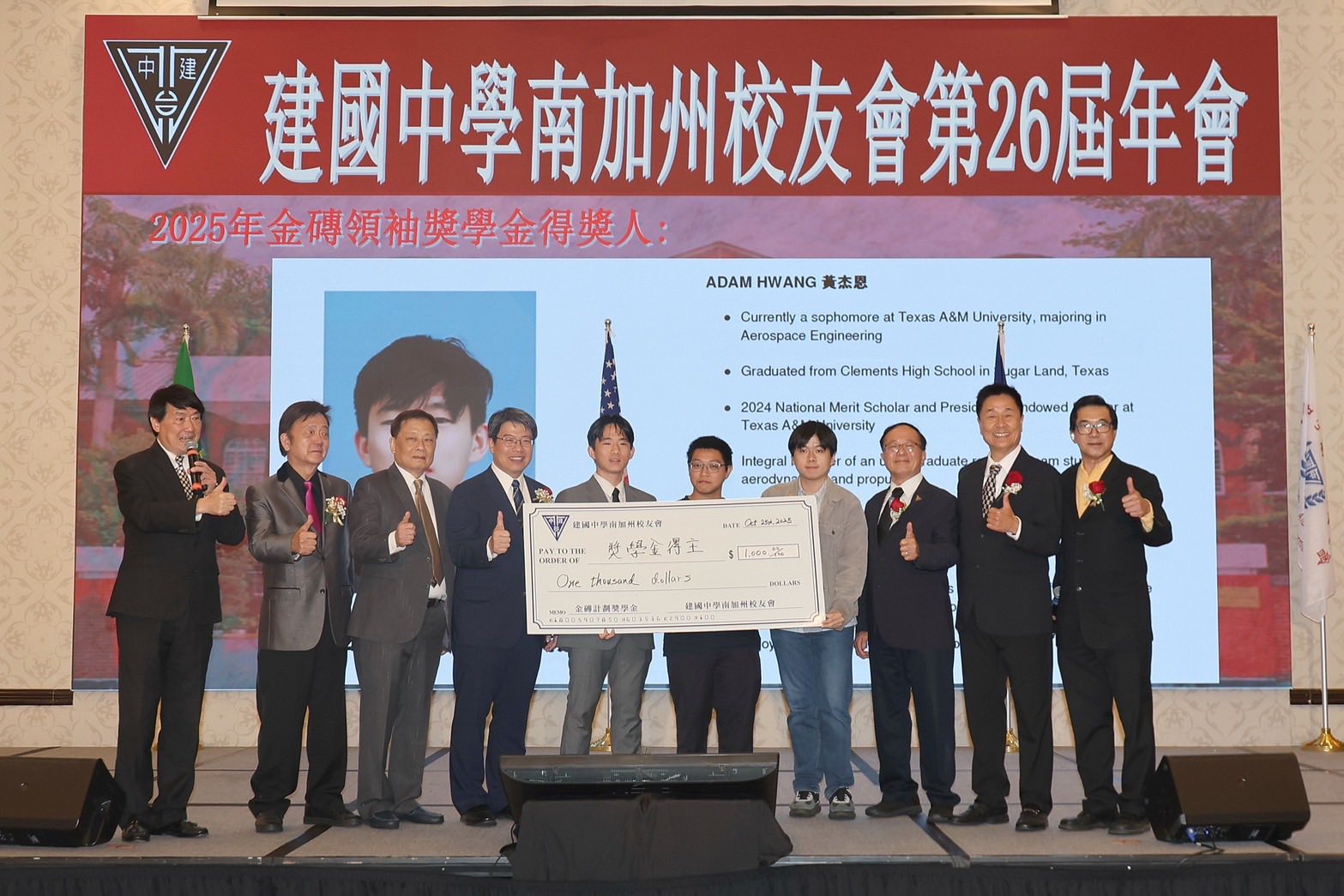 Director General Amino Chi was delighted to attend the 26th Annual Gala of the Chien Kuo High School Alumni Association of Southern California on October 25, 2025.