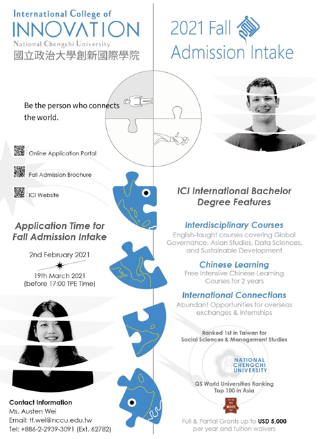 International College of Innovation at National Chengchi University Fall Admission Intake for International B.A. Degree STARTS NOW!