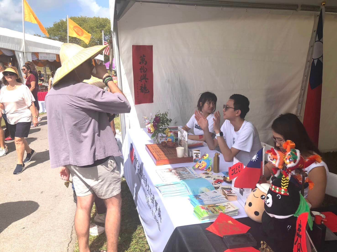 本處3月2日至3日應邁戴郡政府「亞美裔顧問委員會」邀請在南佛州邁戴郡(Miami-Dade County)熱帶公園(Tropical Park)舉辦的「第33屆亞洲文化節」(The 33rd Annual Asian Cultural Festival)現場設置文化展攤,展示台灣的電音三太子、布袋戲偶及戲臺,首次在南佛州展出的三太子尤其「吸睛」,許多人紛紛向前要求合影,並好奇地詢問三太子由來與背景。此外,本處展攤還提供大家領取現場揮毫的書法字帖及品嚐溫潤甘甜的台灣高山茶,同時以「視覺」及「味覺」的方式向民眾推廣台灣文化。