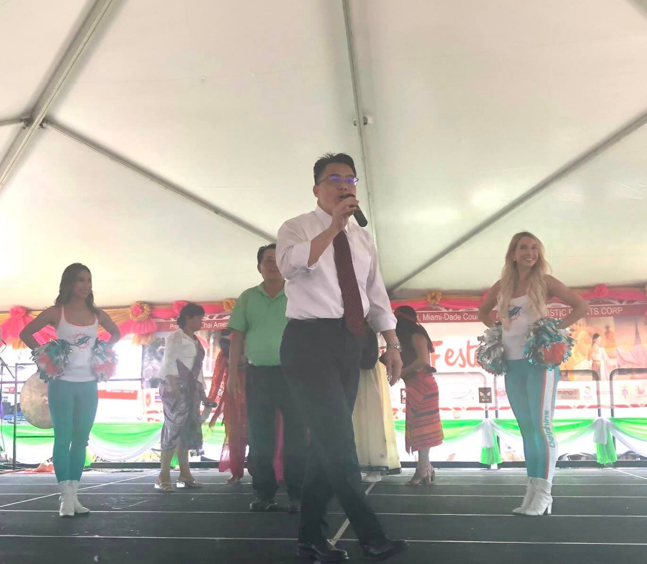 代表邁戴郡郡長Levine Cava及郡議會議長Oliver Gilbert應邀出席的副議長Anthony Rodriguez在台上致詞時頓時成為我國最佳的旅遊代言人,他拿起麥克風,一開頭便大力讚揚台灣,並對台下賓客喊道:「你們一定要去台灣旅遊!」。他另與在場群眾分享自己2019年訪台時對台灣人的好客及台灣美食留下美好印象,表示相當期盼再次旅台