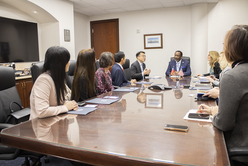 本處處長周啟宇於1/21下午與中佛州僑務諮詢委員王成章、大奧蘭多臺灣商會會長李麗玲、僑務顧問莊杏珠及大奧蘭多臺灣同鄉會會長簡雅嵐拜會中佛州橘郡(Orange County)郡長Jerry L. Demings,並邀請他率團出席本(2025)年3月18日至22日於臺北與高雄舉辦的「2025智慧城市展」,期盼推動臺灣與橘郡在智慧城市及科技領域的合作交流。
