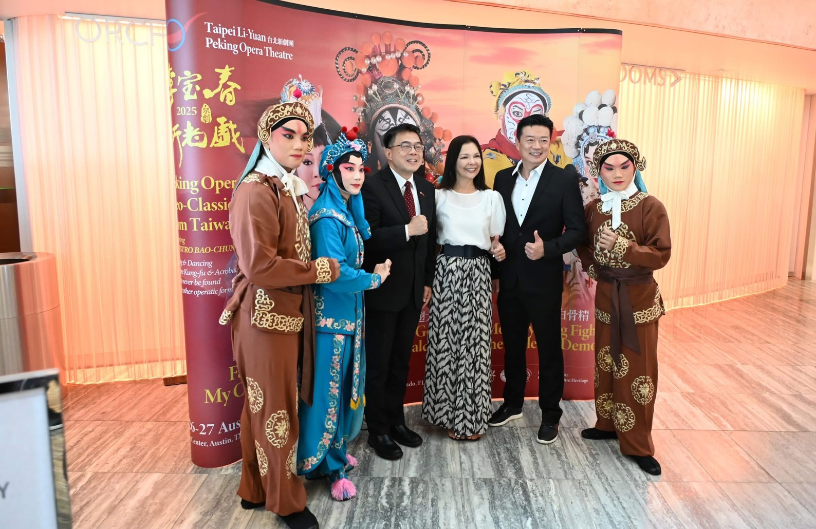周處長日前應邀與中佛州橘郡(Orange County)郡長 Jerry Demings 及大奧蘭多地區政商僑界領袖與代表一同出席由佛光山光明寺與台北新劇團共同舉辦的傳統劇曲響宴。這場活動展現我國深厚的文化底蘊,也讓在場的每位嘉賓感受到參與演出的老師與表演藝術家的用心及付出。