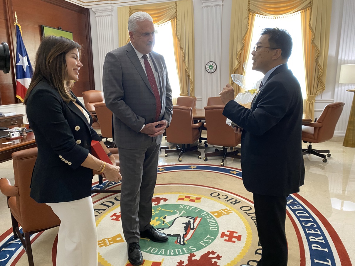 周處長於8月21日下午拜會波多黎各參議會議長 Thomas Rivera Schatz,Rivera參議長肯定台灣與波邦之間的友好合作關係,並表示雖尚未親自訪問過台灣,但對台灣在民主制度、經濟成就、科技發展以及人民的友善熱情並不陌生。 周處長歡迎 Rivera 參議長未來有機會率團訪問台灣,增進雙方交流,並共同探討雙方關切議題與發掘潛在合作機會,為台波關係注入新動力。