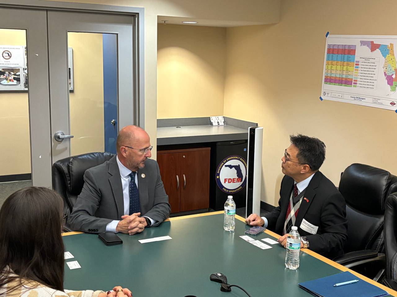 周處長11月12日偕游組長在州府塔城(Tallahassee)會晤⸢佛州緊急事務管理局⸥(FDEM)局長Kevin Guthrie、副局長Keith Pruett與Stephanie Houp等人,就推動台佛災防應變合作交換意見。