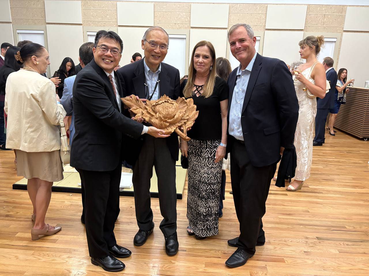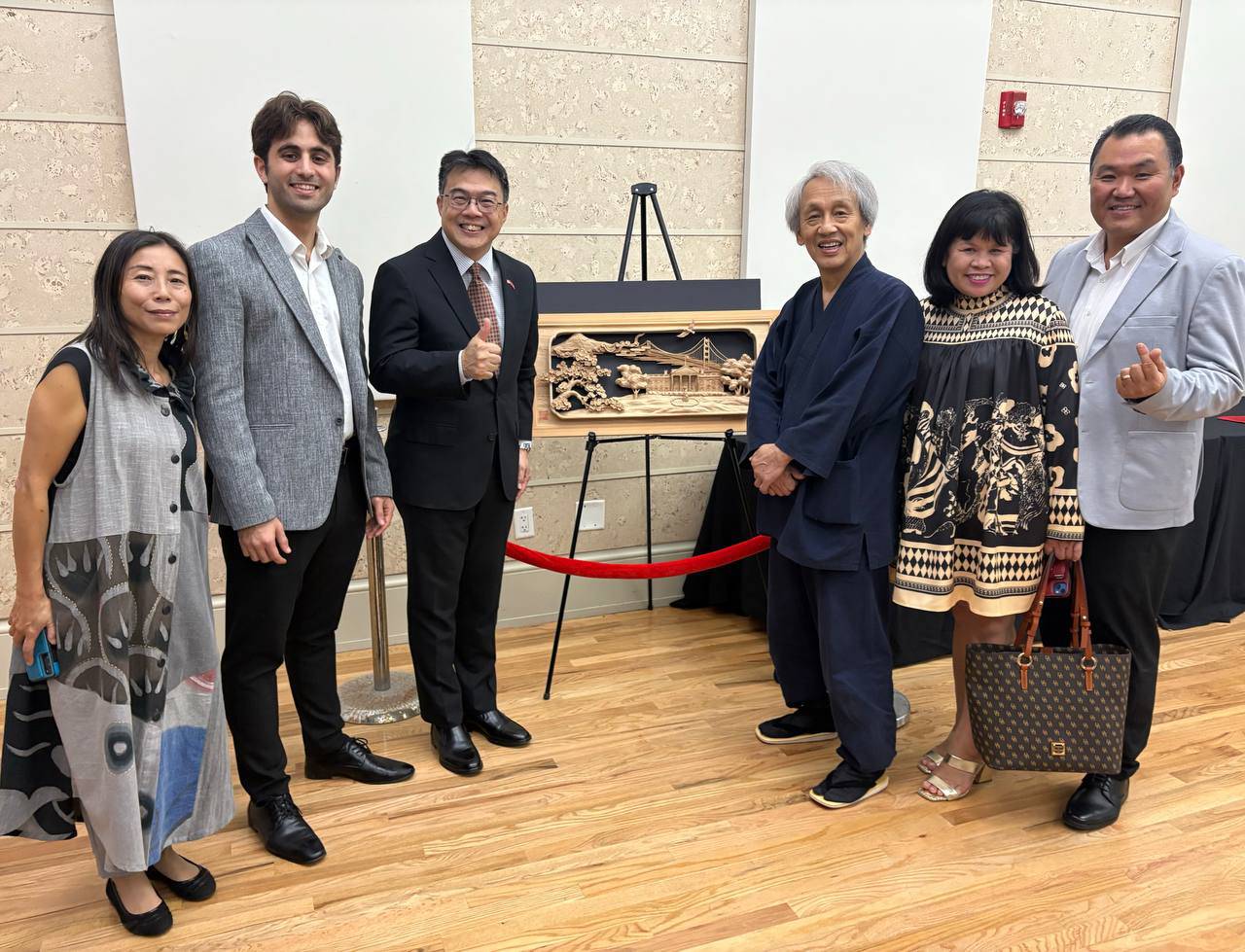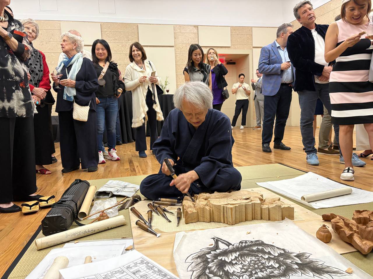 周啟宇處長偕游嘉翔組長於 12 月 4 日應邀出席「日美協會」(Japan-America Society)舉辦的忘年會,並與出席賓客欣賞現場展出的日本「井波」(Inami)木雕及雕刻家「南部白雲」(Nambu Hakuun)的現場示範。