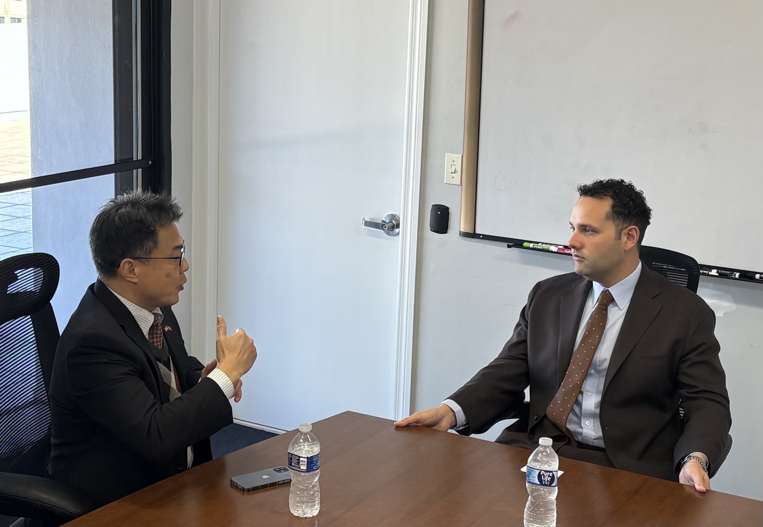 周處長偕游嘉翔組長2月2日前往南佛州海厄利亞市(City of Hialeah),拜會甫宣誓就職的新任市長Bryan Calvo。雙方就台佛經濟合作及海厄利亞市產業發展規劃等議題交換意見。 Calvo市長現年僅28歲,是海厄利亞市建市百年以來最年輕的市長,在此之前曾擔任該市市議員。