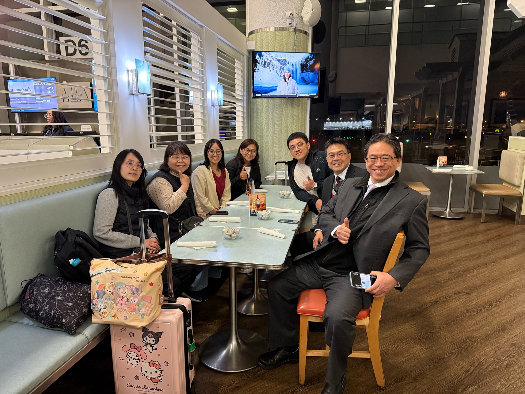 周處長偕李領事金星日前在邁阿密國際機場協助前往聖克里斯多福及尼維斯義診的台北榮民總醫院陳伯亮醫師一行5人轉機。 周處長在與醫師們早餐敘時,除介紹佛羅里達州的政經、地理與人文概況及本處業務外,對他們在新年假期間遠赴友邦進行義診之舉表示敬佩,並預祝他們此行任務圓滿順利成功。