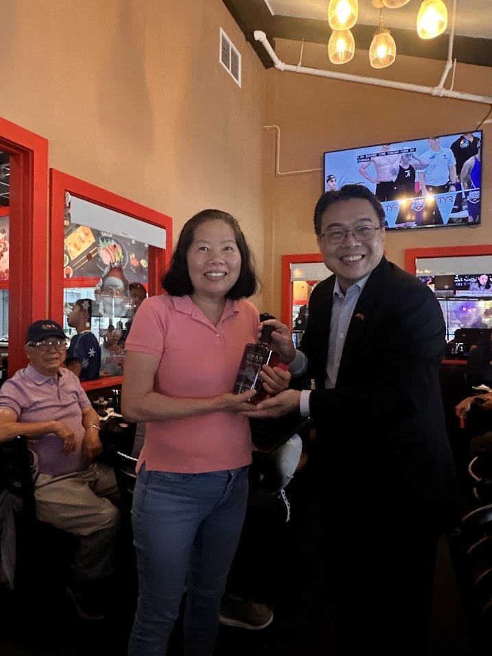 ,與近百位僑胞及友我人士齊聚一堂,共同歡慶佳節。 周處長表示,很高興看到南佛州臺灣社群持續成長,也感受到僑胞彼此間深厚的情誼。近期臺灣與佛羅里達州在經貿合作上持續深化,期待未來有更多臺商與僑胞來佛州發展。 活動現場氣氛熱鬧溫馨,不僅有許多僑界老朋友相聚交流,也再次展現南佛州臺灣社群的凝聚力與活力。