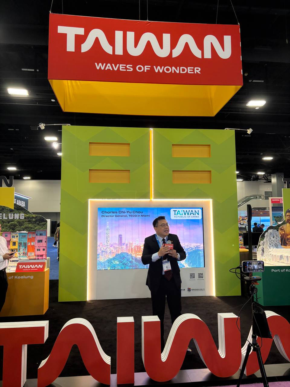 4月14日下午,周處長應邀出席在邁阿密舉行的「2026 全球海洋貿易郵輪展」(Seatrade Cruise Global 2026)台灣展館開幕儀式並致詞。 周處長與港務公司周永暉董事長、美屬維京群島參議會議長 Milton Potter、參議會經濟發展委員會主席 Hubert Frederick,以及交通部觀光署同仁、我國航空與旅遊業者共同為展館剪綵。此舉不僅展現了各界強強聯手,更向世界強力宣示台灣開拓全球遊輪觀光產業的決心! 此外,應本處特別邀請,多位國際貴賓也親臨現場觀禮支持,包括英屬百慕達群島觀光部長 Owen Darrell、馬來西亞雪蘭莪州行政議員黃瑞林、巴生市市長 ABD Hamid 及雪蘭莪州旅遊局執行長蔡依霖等人,現場交流熱絡,成功促進多方國際友誼與合作。
