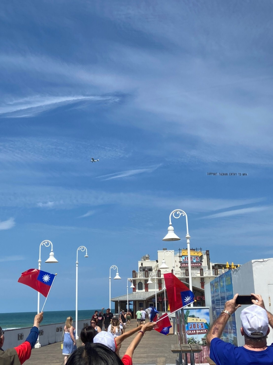 為表達參與「世界衛生大會」(WHA)之訴求,爭取各界支持,大奧蘭多臺商會聯合佛州急難救助協會於5月23日下午,租用小飛機在中佛州Daytona Beach上空盤旋,後面拉著「SUPPORT TAIWANT ENTRY TO WHA」布條,表達支持臺灣參加世界衛生大會訴求,與會的僑胞們身穿國旗裝,手中並揮舞小國旗,場面熱烈。