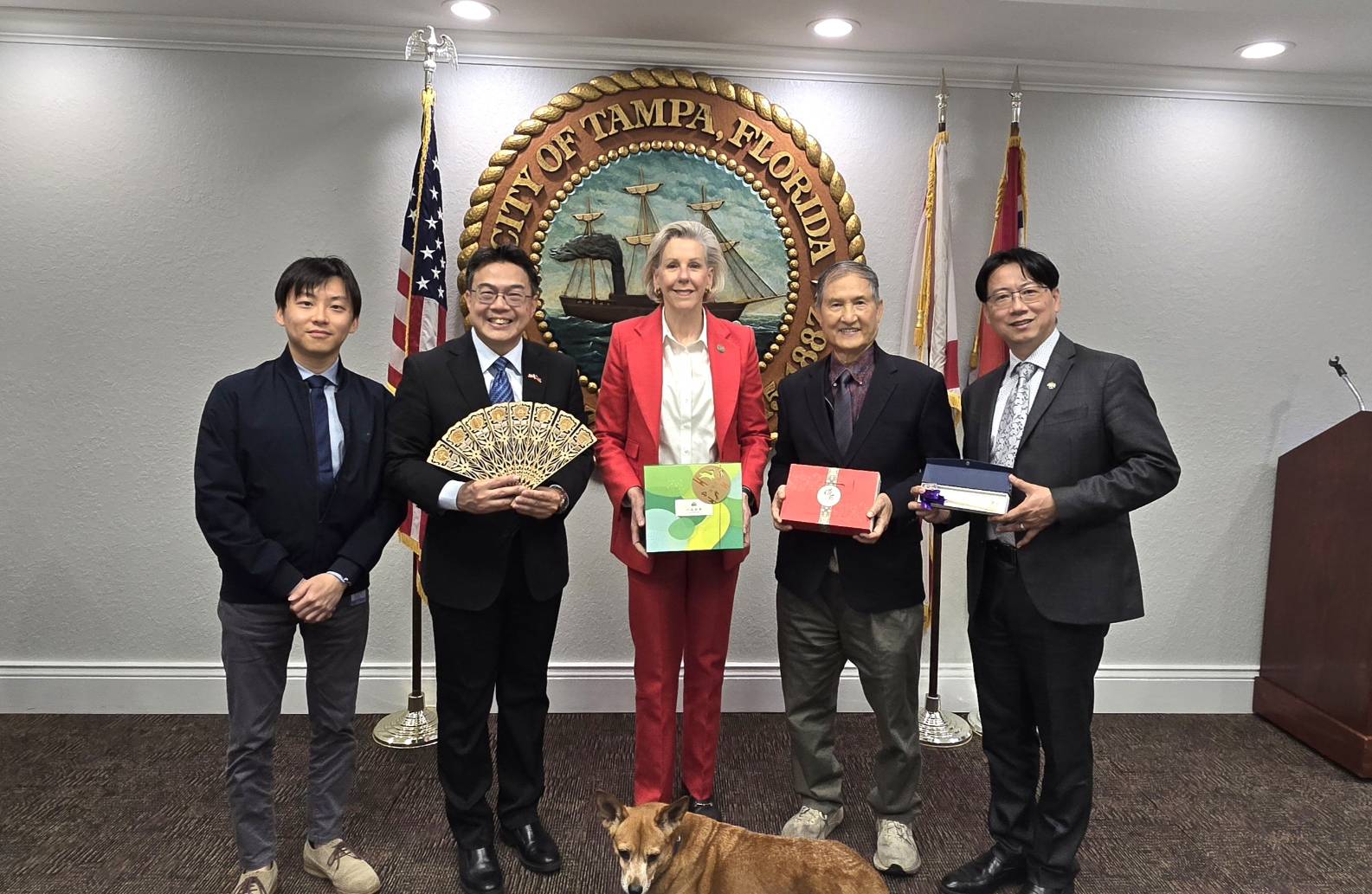 On February 6, Director General Chou, joined by Overseas Community Affairs Council member Lee San-fu and representatives of Taiwanese business associations, met with Tampa Mayor Jane Castor in a relaxed and friendly atmosphere. Director General Chou invited Mayor Castor to lead a delegation to Taiwan for the Smart City Summit, with discussions focusing on how AI can enhance city governance. The delegation also shared the Taiwanese community’s hope to give back to Tampa through park adoption and beach cleanup initiatives. Mayor Castor expressed sincere appreciation for the Taiwanese community’s long-standing contributions to Tampa’s growth and diversity, and looked forward to visiting Taiwan to further strengthen Taiwan–Florida cooperation. Adding a warm touch to the meeting, the mayor’s beloved dog made a few friendly appearances, bringing smiles and a sense of warmth to the conversation.