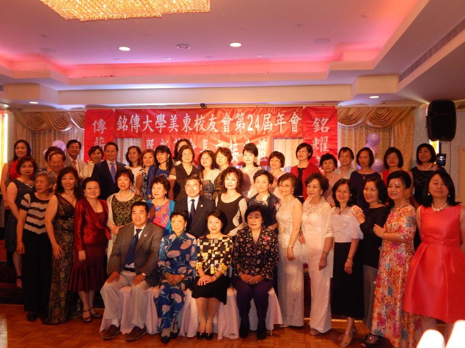 銘傳大學美東校友會於6月11日在飛越皇后牡丹廳舉行第24屆年會並進行新舊任會長交接典禮。徐儷文大使(前排右二),名譽理事長李冰(前排右一),卸任會長林宣儀(第二排右六),新任會長席望倪(第二排右七)
